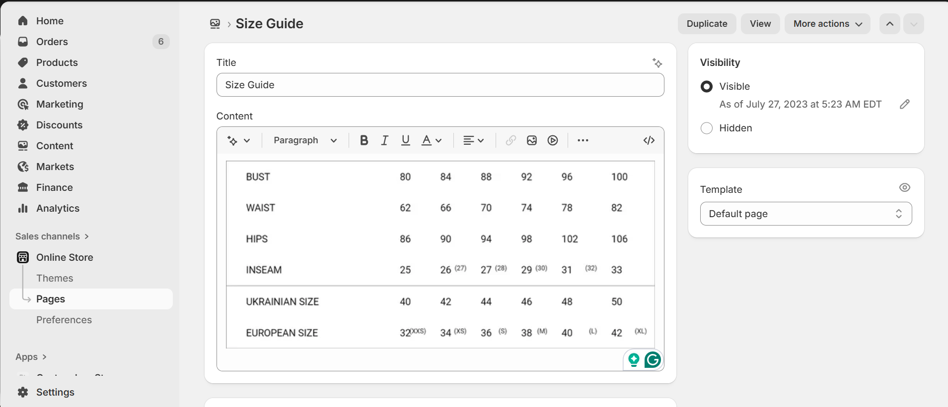 If you have many products where the size guide page should be added, please click here to go to the instructions and follow them.