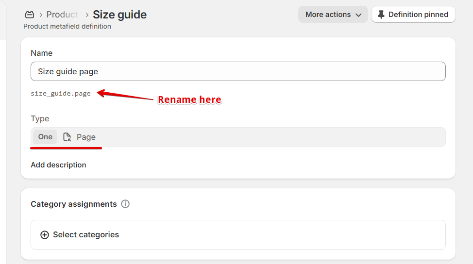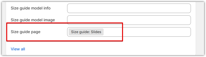 Step 3: Connect the Size Guide page to the metafield in the Product settings.