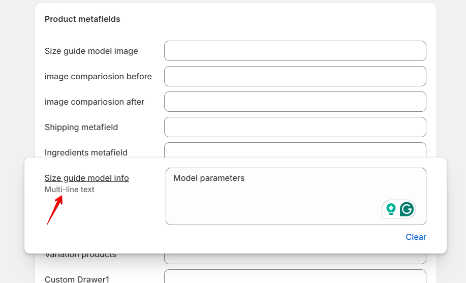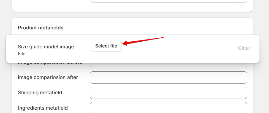 Note: Please repeat this step for each of your products where the size chart should be displayed. The size guide button will not be shown for products that have an empty metafield.