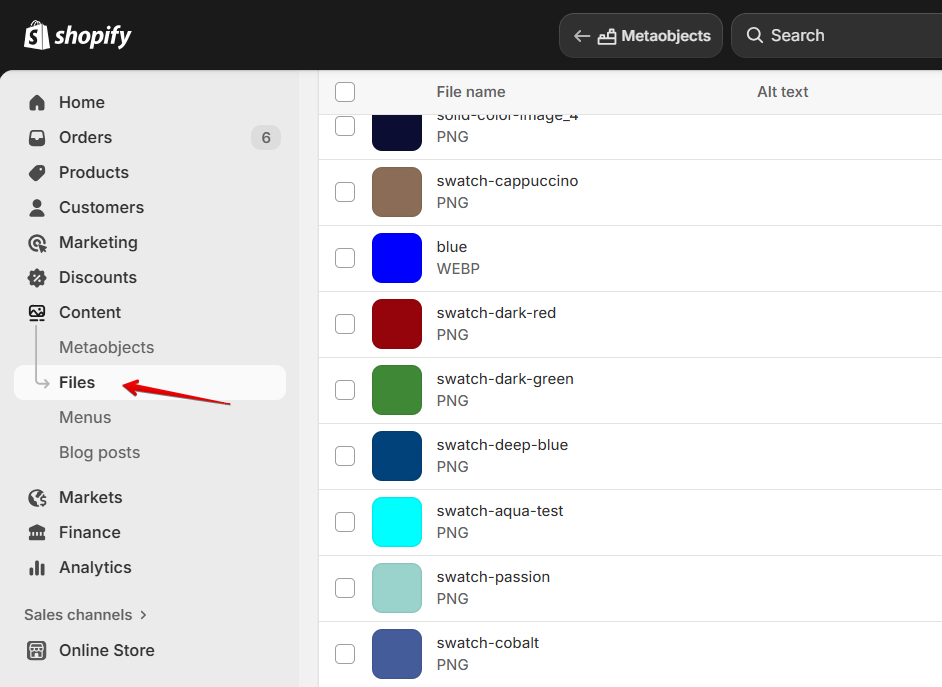 Once the file is ready, navigate to the Admin panel -> Content -> Files and upload it. Once the files are uploaded to your admin, they will be displayed as swatches on the page. No additional actions are required.
