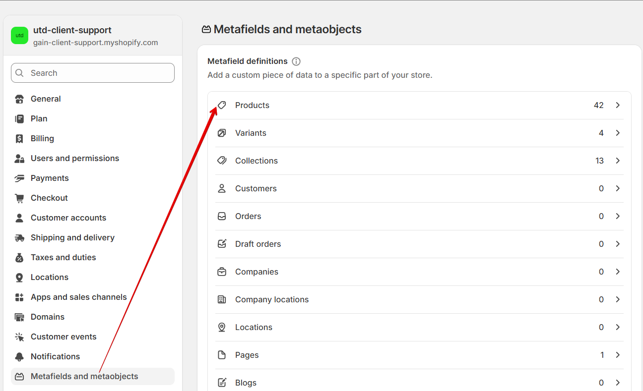 To create a metafield, navigate to the Admin panel -> Settings -> Metafields and metaobjects -> Products, click on "Add definition"