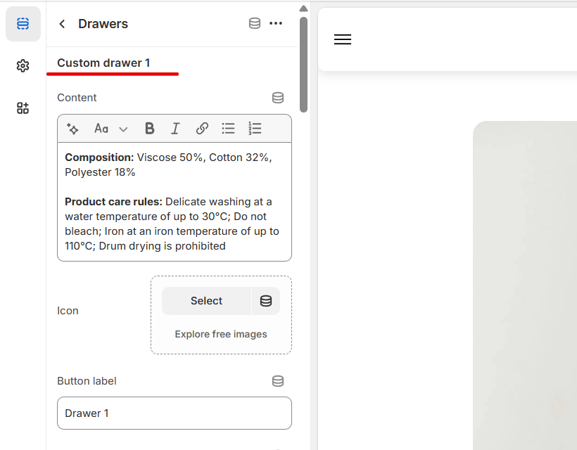 Display unique content for each product in Custom drawer 2, 3, and 4