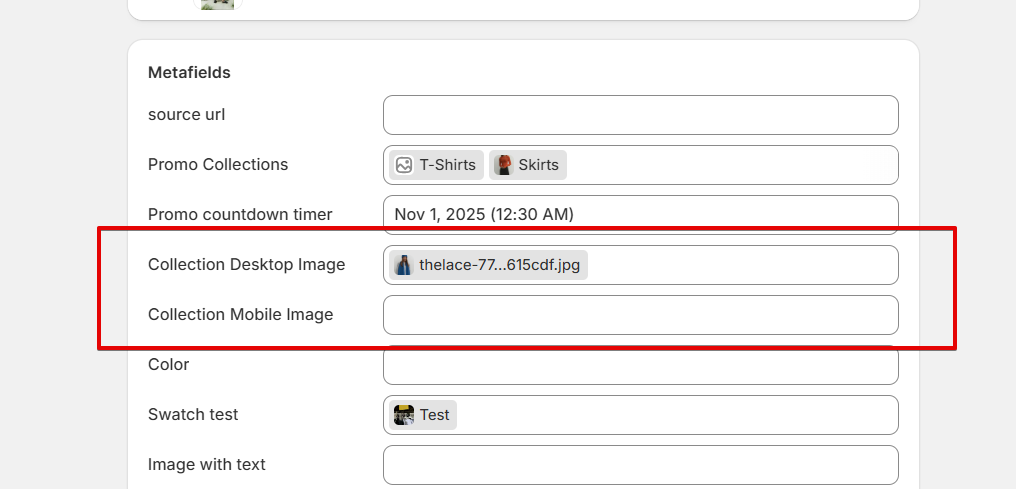 If you want to use the Banner section in the collection page to have dedicated images for mobile and desktop views, you can do so via metafields. Please, follow the steps.